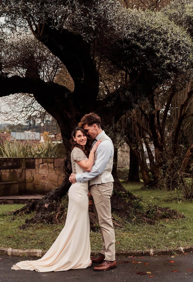 Por su parte, la novia lució un vestido aparentemente sencillo que escondía una espalda infinita de pedrería, resaltada por el acertado peinado de ondas suaves. El ramo, a juego con la flor de la ceremonia, aportó el toque de color al look.