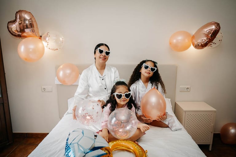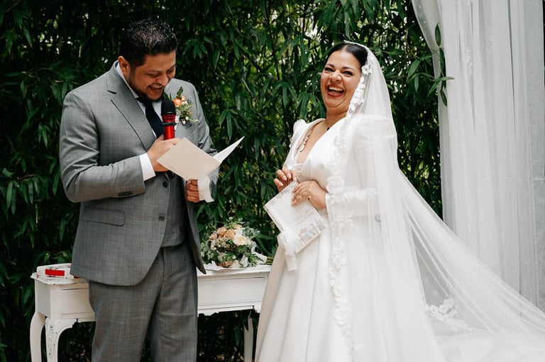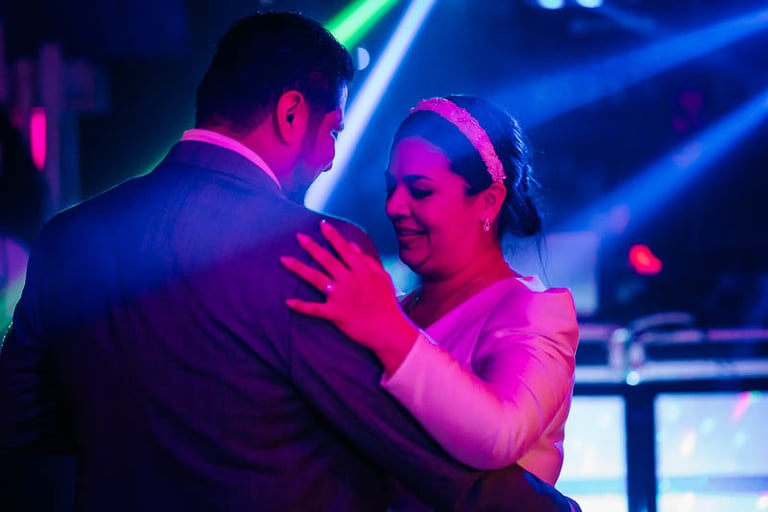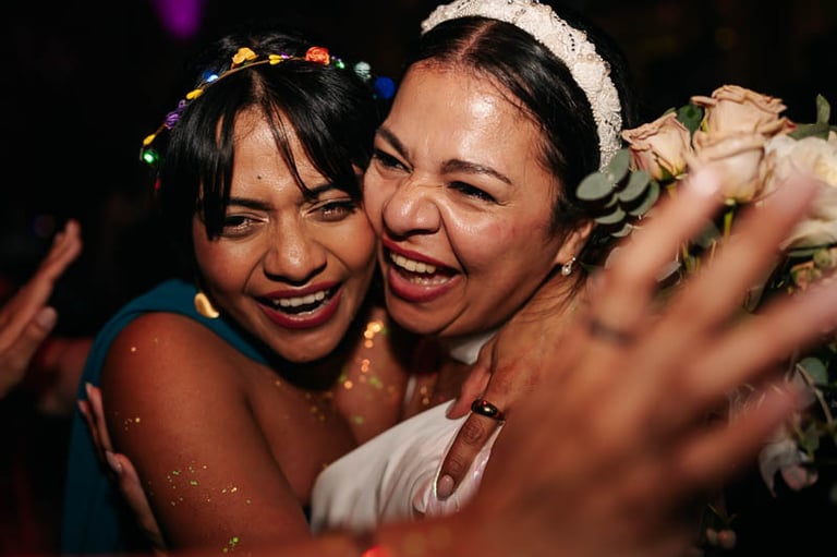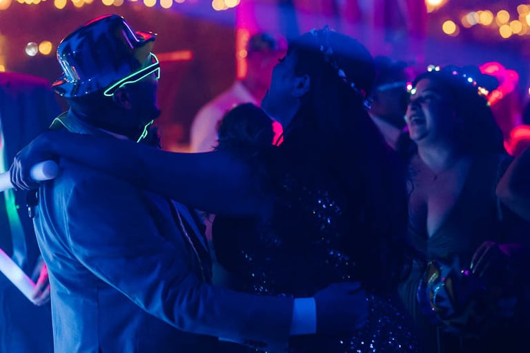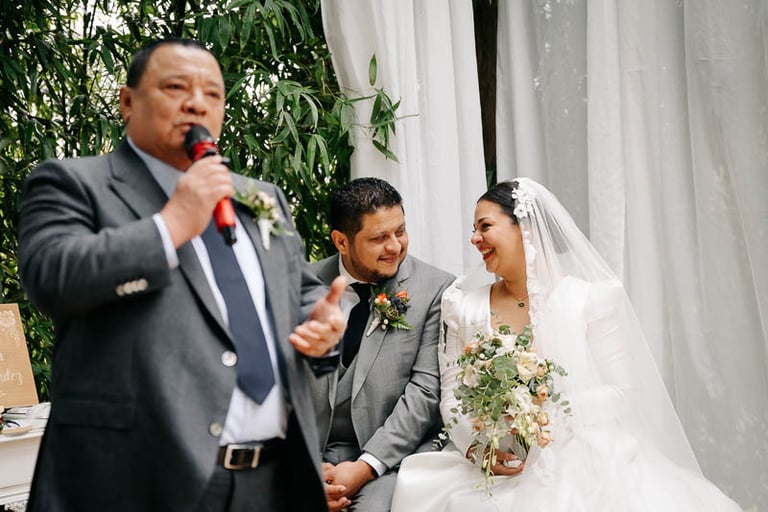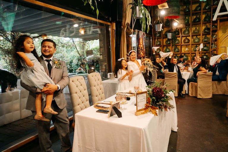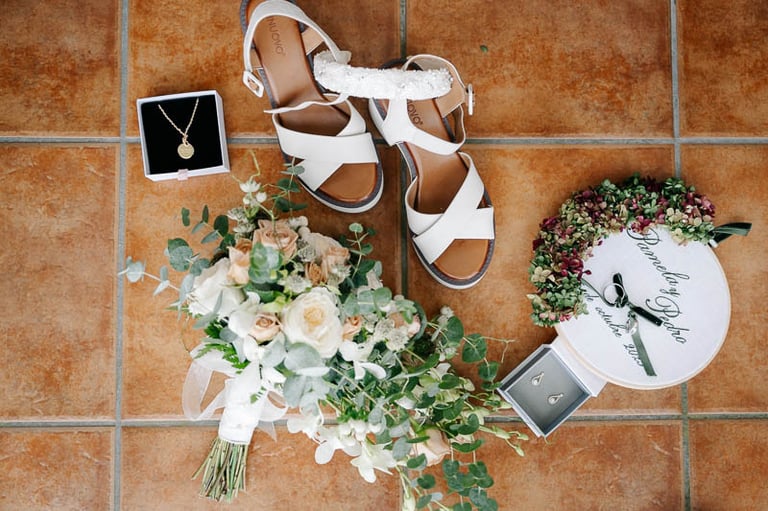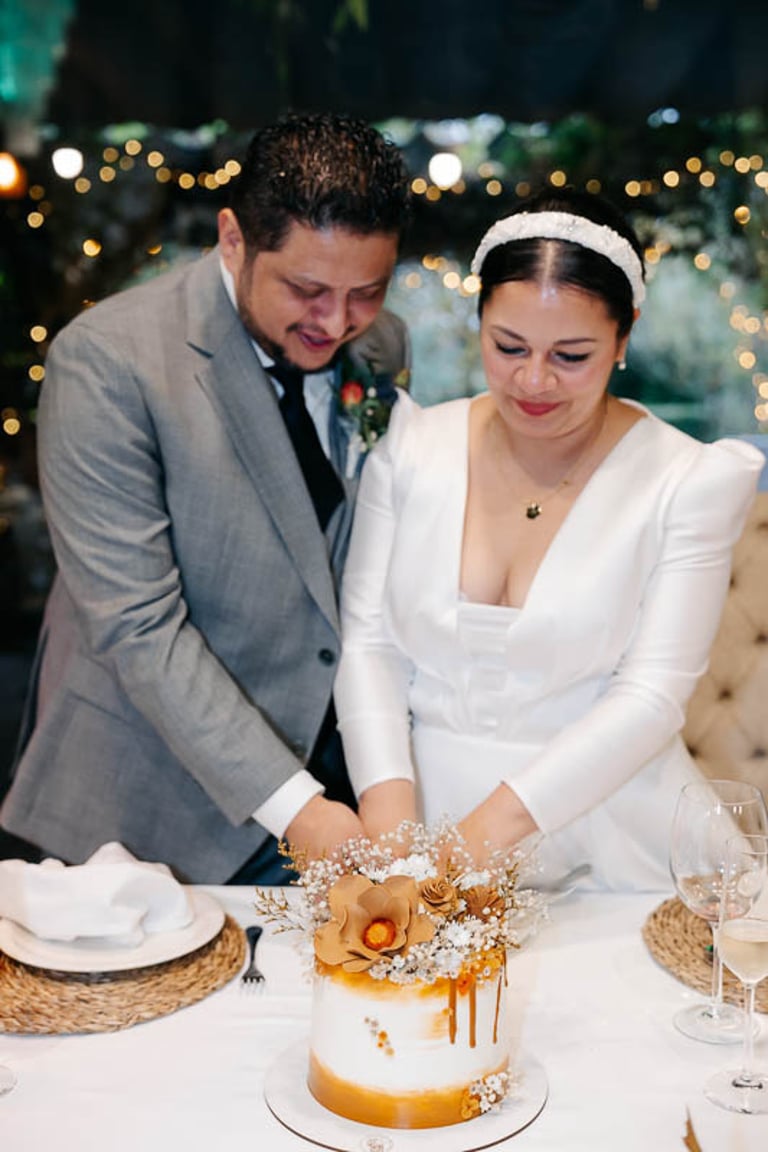 Tras una ceremonia llena de amor, emoción y muchas palabras bonitas por parte de novios e invitados, pasamos al cóctel en el jardín donde continuó la música en directo, esta vez con un repertorio más animado. Para el banquete, las mesas lucieron centros en la paleta de color prevista, además de ilustraciones personalizadas de cada invitado que hacían a su vez la función de marcasitios. De nuevo se vivieron momentos muy emotivos con varios discursos y canciones especiales. Uno de ellos fue el corte de la preciosa tarta de fondant, que traía como acompañamiento cupcakes para cada invitado a modo de detalle. Para abrir el baile, los novios bailaron una pieza que interpretó en directo el padre de la novia, y posteriormente el ambiente dio un giro de 180 grados donde los accesorios de luz de la hora loca dieron paso a varias horas de baile non stop.